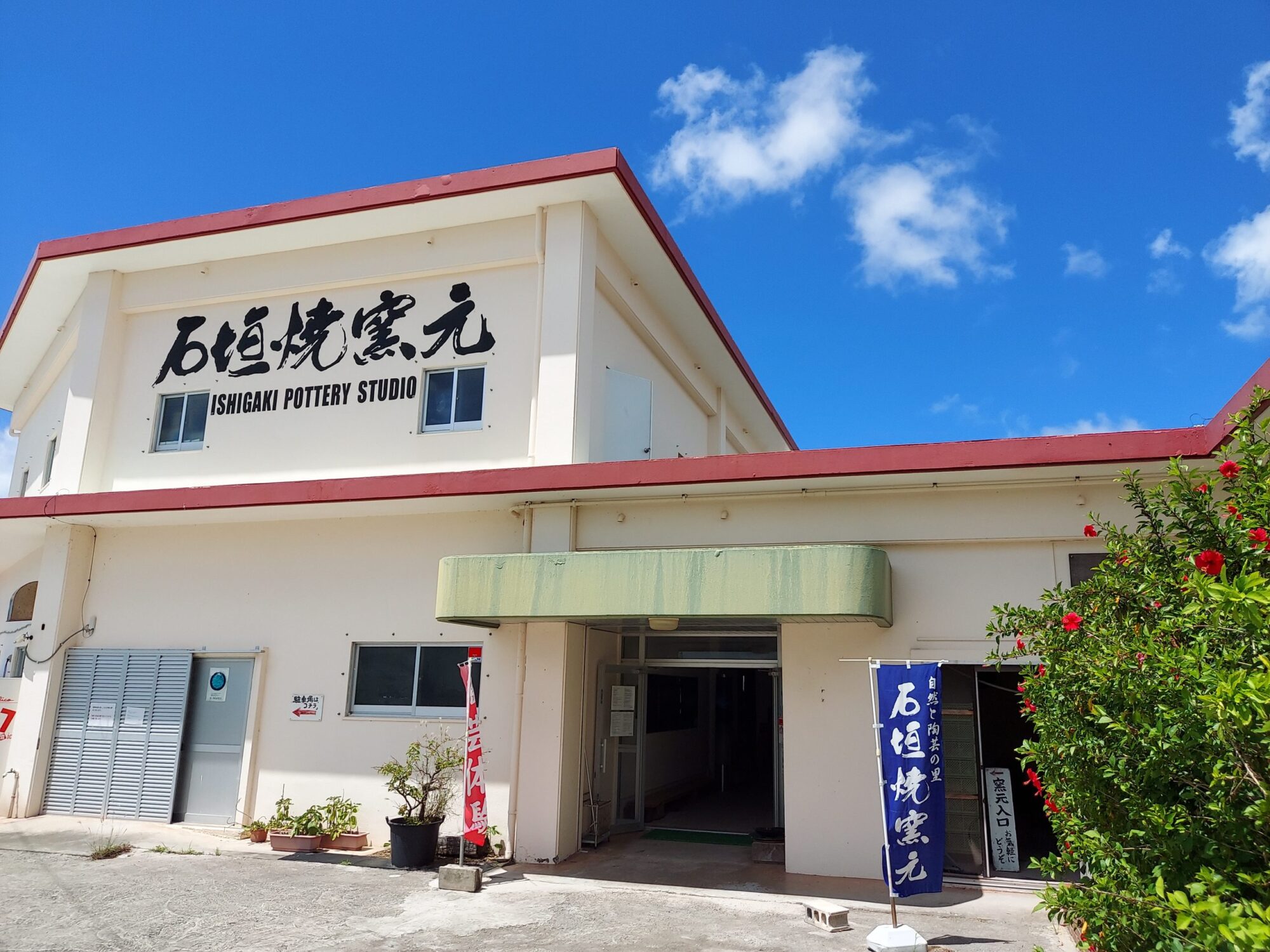※ナビを設定してお越しになる場合、間違った案内をされることがありますのでご注意下さい。当窯元は79号線沿い(名蔵湾沿い)にあるクリーム色の建物です。