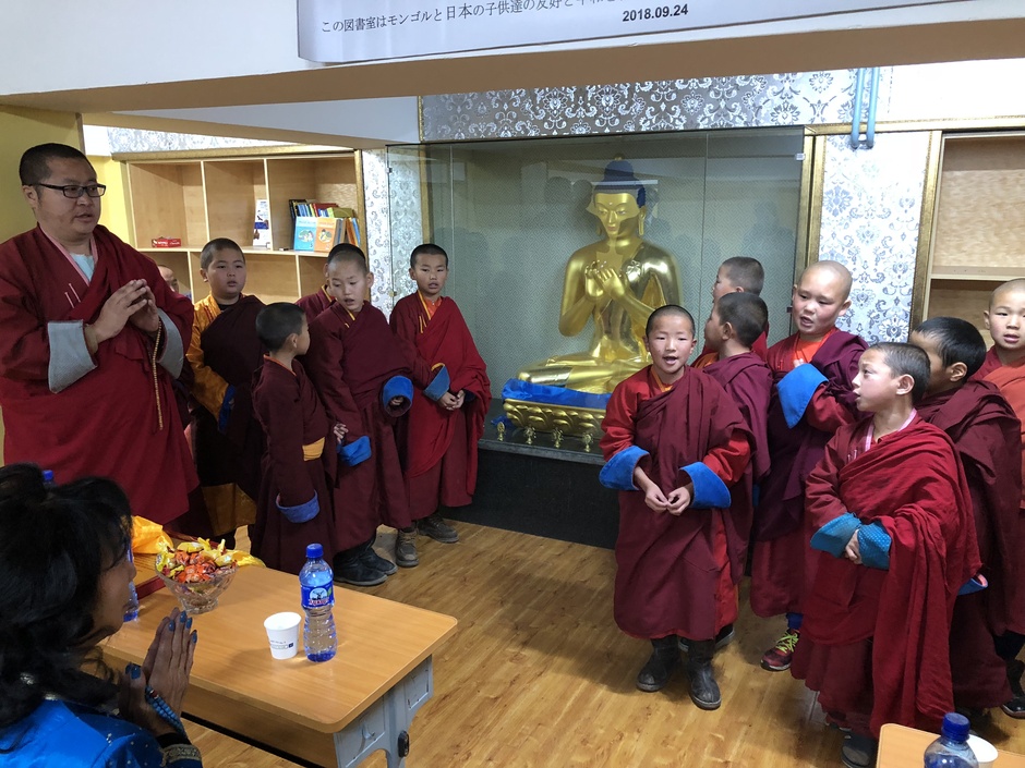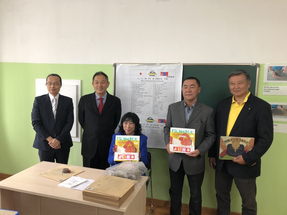 また、今回もモンゴル子供支援の江口喜多江代表とナムスライ氏と同行しました。ガンタン寺への子供図書館並び仏像及び石垣焼寄贈。児童養護施設、聴覚障児童施設での陶芸教室並び29学校並び116学校(視覚障害児童)への本の寄贈がありました。