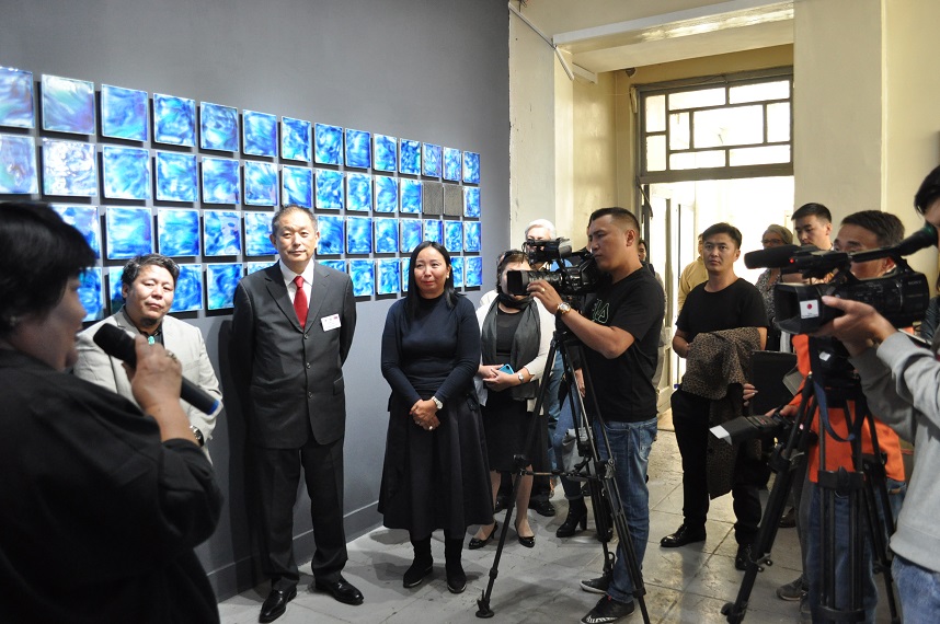 モンゴル文化芸術大学陶芸学部の校舎に永久展示となりました。ブルーは希望の色と言われています。このサイレント・ブルー・ウォールの作品が芸大の学生にとって希望の象徴となり、絶対に諦めない不屈の精神と、揺るがない自身を持って世界へ羽ばたいて頂きたいと願いを込めて寄贈しました。