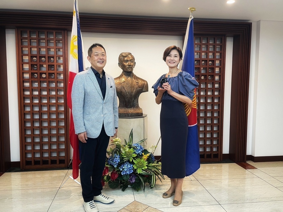 石垣焼・ピナツボ火山灰入油滴天目茶碗、在フィリピン日本国大使館寄贈。