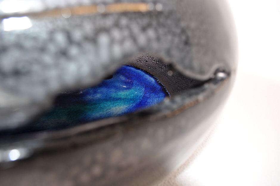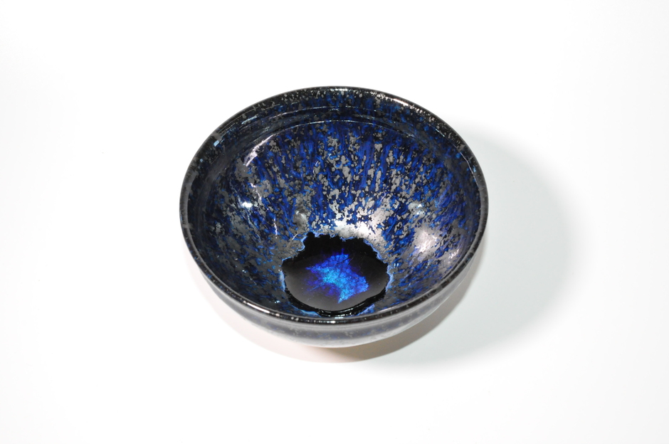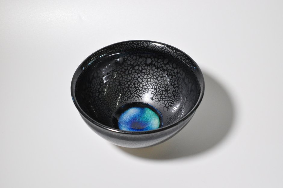 設計は隈研吾氏です。石垣市役所の市長室にフランス・パリのグラン・パレで展示した作品名「覗く」、1階に碧海入油滴天目と瑠璃油滴天目茶碗、また2階にはインスタレーション作品「海の目」が展示してあります。ご覧いただければ幸いです。